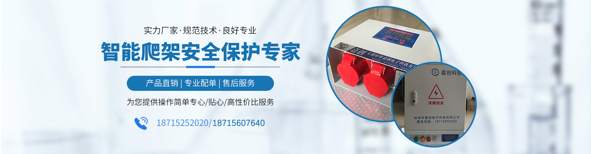 嘉創(chuàng)電子簡介嘉創(chuàng)電子科技有限公司地處環(huán)境優(yōu)美、風(fēng)景秀麗的安徽蚌埠市,鄰近中國建筑玻璃產(chǎn)業(yè)基地,緊靠329國道、京滬高鐵、合徐高速、寧洛高速,京臺高速地理位置良好。嘉創(chuàng)電子科技有限公司是建筑施工附著式升降腳手架控制系統(tǒng)等產(chǎn)品專業(yè)研發(fā)、生產(chǎn)加工、銷售的公司。公司成立于2019年3月,是安徽經(jīng)倫公司改變重組一新的公司,廠房面積約450m2 ,人員20余人,日產(chǎn)能80~100臺分控箱,其附著式升降腳手架控制系統(tǒng)符合CECS 373-2014《附著式升降腳手架升降及同步控制系統(tǒng)應(yīng)用技術(shù)規(guī)程》并取得《附著式升降腳手架同步控制系統(tǒng)檢驗(yàn)報(bào)告》。現(xiàn)在原老公司一、二代產(chǎn)品基礎(chǔ)上優(yōu)化升級為新的一型、二A型、二B、三...